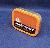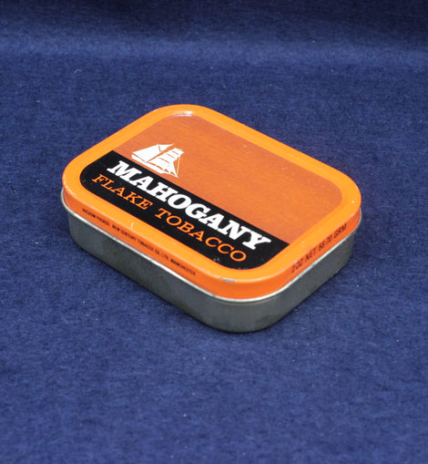 This vintage Mahogany Flake Tobacco tin is a striking example of classic British tobacco packaging, featuring its distinctive brown and orange colour palette, bold typography and the traditional sailing‑ship emblem. With its rounded edges and sturdy metal construction, it captures the look and feel of mid‑20th‑century smoking memorabilia, making it an appealing piece for collectors of advertising tins, tobacconist history, and retro packaging design.