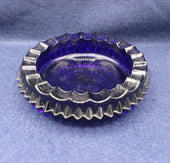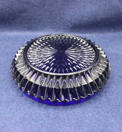 A nice deep blue tone to this vintage ash tray. Design typical of the 1960's. 13cm wide