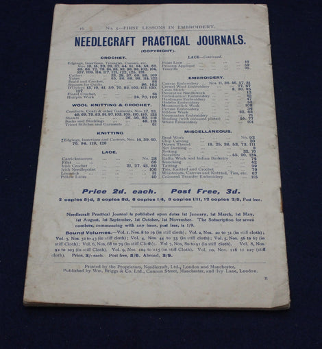 During the late Victorian and Edwardian eras, needlecraft was considered a vital life skill, taught widely in schools and reinforced through affordable printed guides like these First Lessons in Embroidery booklets. Publishers such as Needlecraft Limited played a key role in making practical craft education accessible to working‑class households, offering step‑by‑step lessons for just a penny.