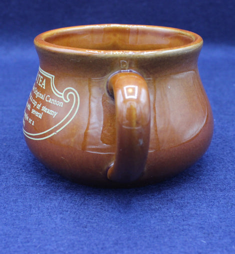 This really is a stunning mug with a deep ginger coloured glaze. The decal instructs Enjoy one fl ounce of The Original Canton Delicate Ginger Liqueur in a cup of steamy hot water. Top with several slices of delicious apple or a twist of lemon.