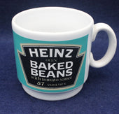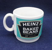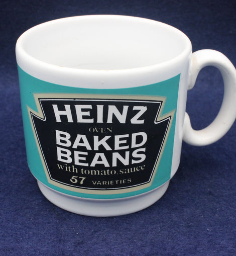 Vintage Heinz Baked Beans Collectors mug. Heinz Baked Beans logo with 57 varieties text. Short mug with black on light blue colours.