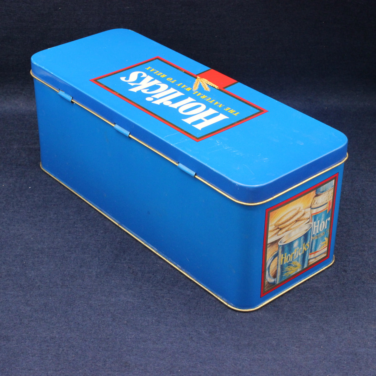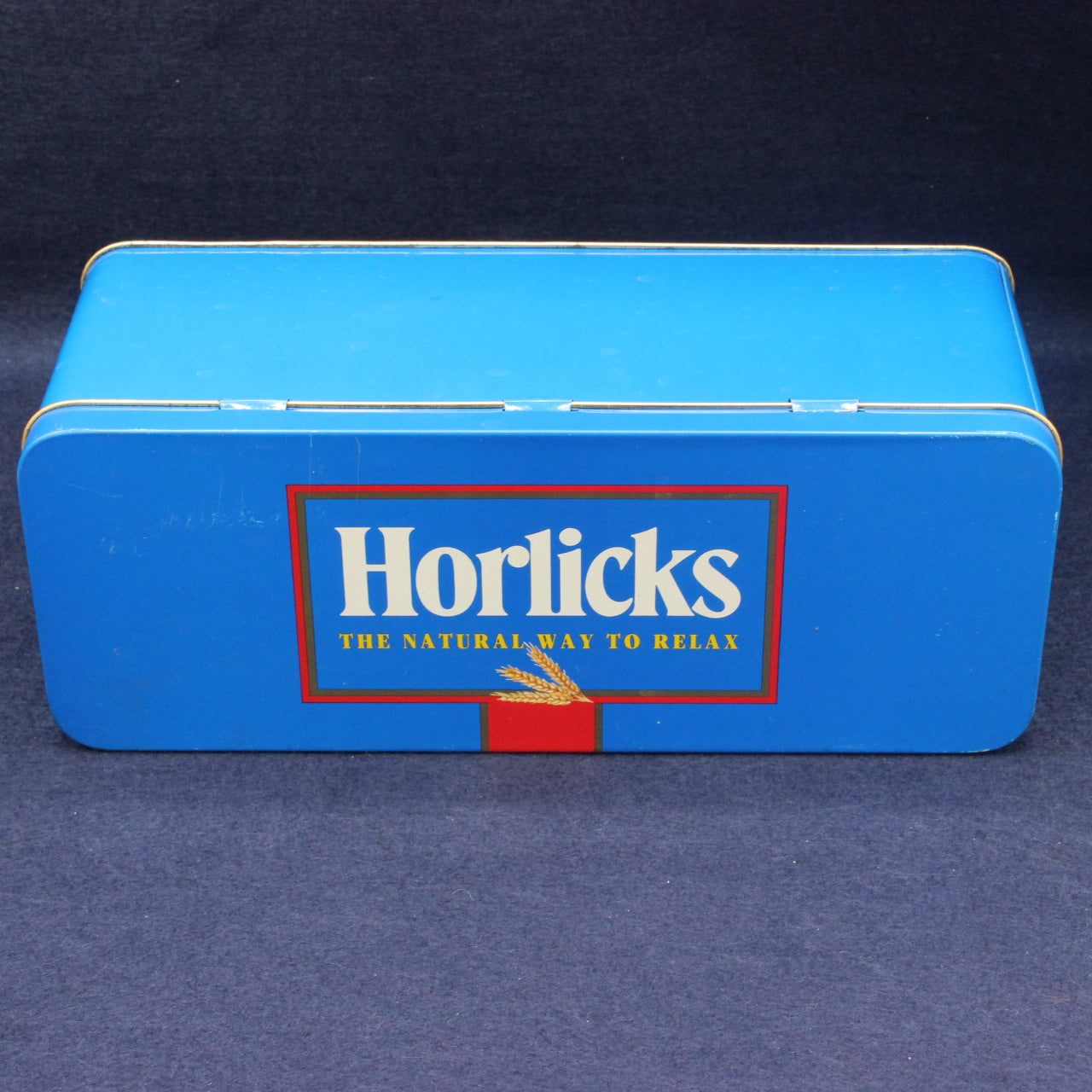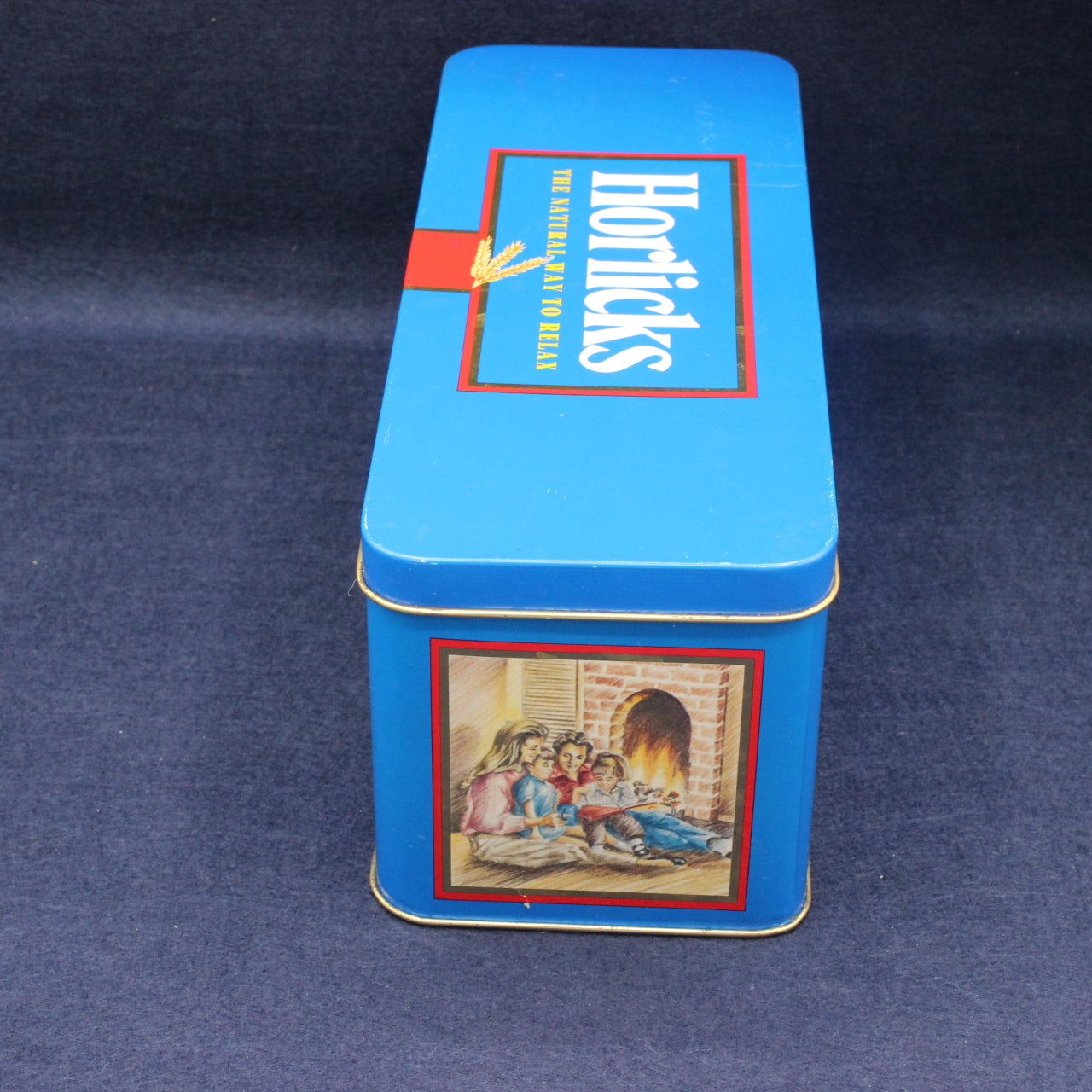 Horlicks, first formulated in the late 19th century, became a household name as a nourishing malted drink, associated with bedtime comfort and family tradition. By the mid‑to‑late 20th century, promotional tins were produced to celebrate its heritage, combining practical storage with nostalgic design.