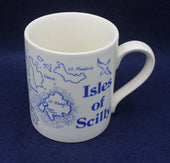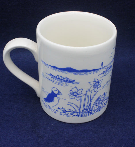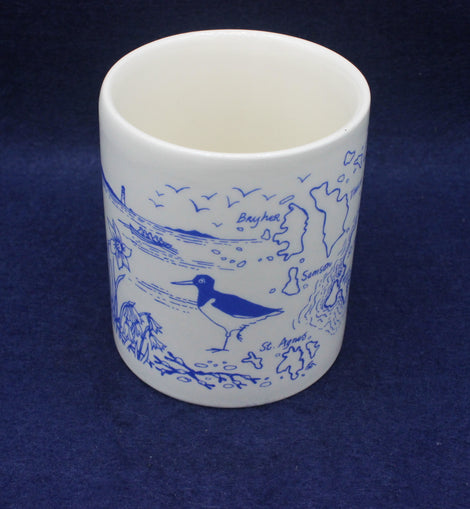 Vintage Isle of Scilly Collectable Mug in excellent condition. White mug with blue nature-themed design. Base stamped Made specially for The Kavorna Isles of Scilly.