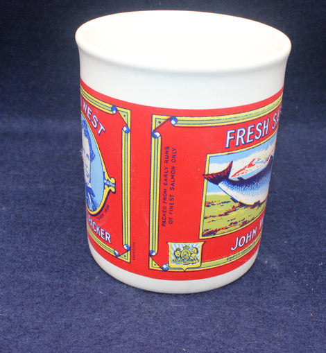 Vintage John West Salmon Promotional Mug in good condition. Picture of John West the original packer and a large fresh salmon with text product of Alaska, A rarer mug for the collectors shelf.