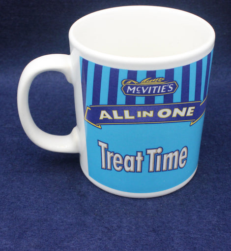 Vintage Mc Vitie's All in One Treat Time Collectable Mug excellent condition. Mug with blue and white design featuring 'Mc Vitie's All in One Treat Time' text.