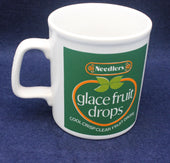 White mug with Needlers glace fruit drops branding on a green background. Nice rarer mug to add to your collection.