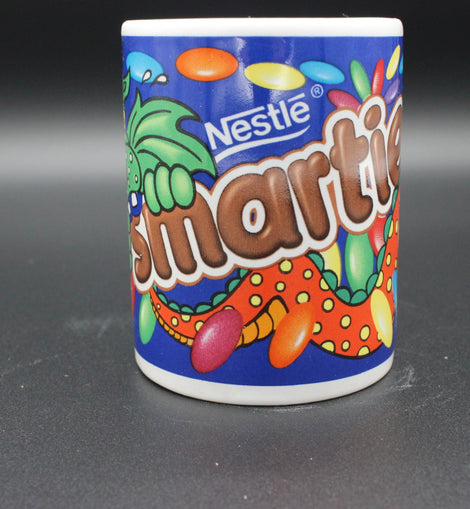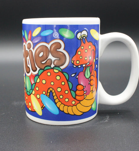 Brighten up your mug collection with this vibrant Nestle Smarties advertising mug from the 1980s. Featuring a colourful dragon/monster design, this original and licensed production mug is a great addition to any advertising or 1980s themed collection. With its multicoloured design and Nestle branding, this mug is a must-have for any Smarties fan.