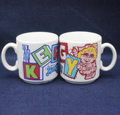 Pair of collectable children's mugs "Muppet Babies." Highly collectable mugs from the 80's featuring Baby Miss Piggy and Baby Kermit The Frog. Nice addition for Muppet fans. The 1984 show Muppet Babies had toddler versions of the Muppets living together in a nursery under the care of a woman known as Nanny.