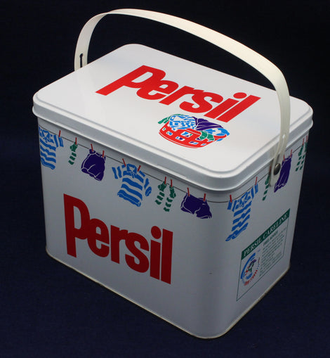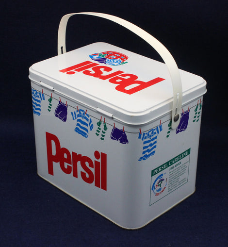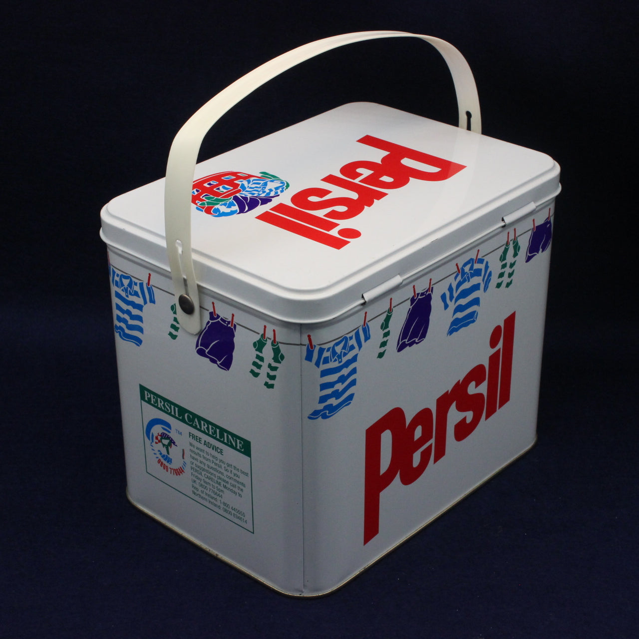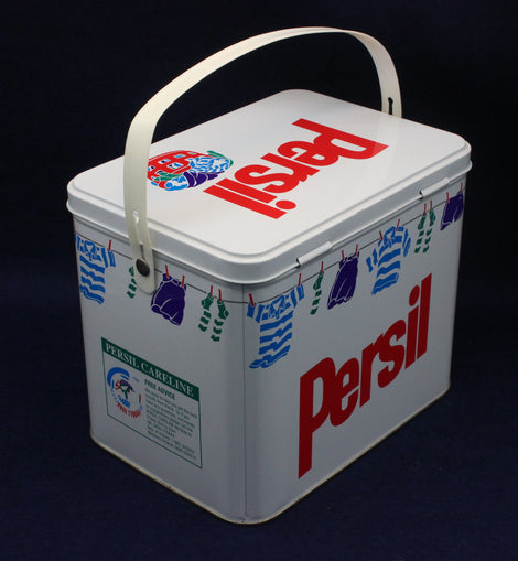 Tins from this era often featured bold lettering, simplified layouts, and vibrant colours — a clear reflection of the graphic trends of the time. Today, Persil tins from the 80s and 90s are collected for their retro aesthetic, their connection to everyday British life, and their role in documenting the evolution of household branding.