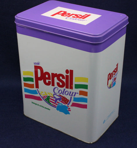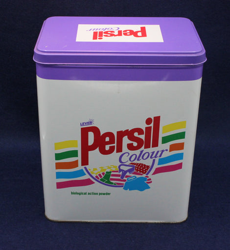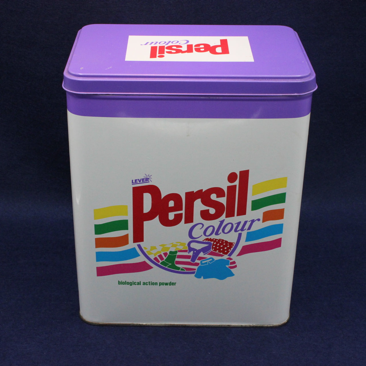 This Vintage Persil Colour collectable storage tin features bright, bold branding in the familiar Persil colour palette, capturing the look of late‑20th‑century British laundry packaging. The clean graphics and instantly recognisable logo make it a standout display piece, perfect for adding a pop of nostalgic colour to any utility room, kitchen shelf or vintage advertising collection.