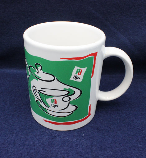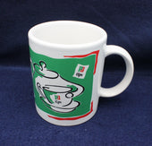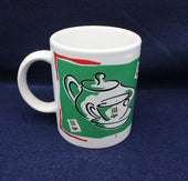 Great looking mug with green abstract design of a teapot and teacup. PG tips motifs and red accents.