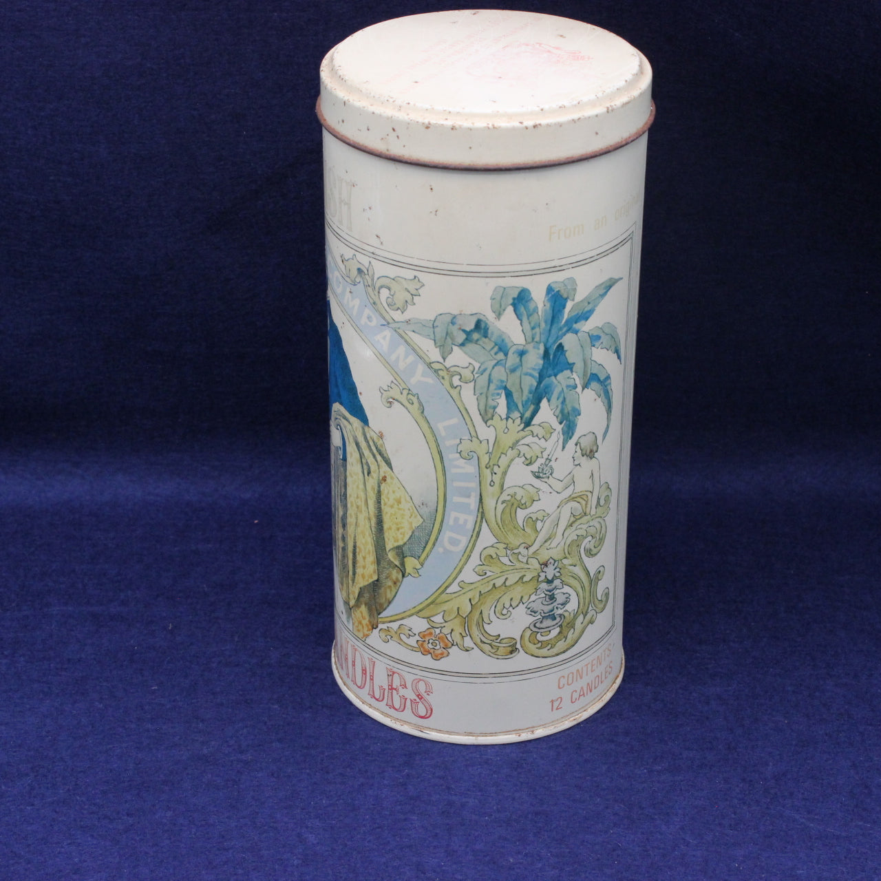 Perfect for collectors of vintage candle tins, household goods, and British brand heritage, it captures the era when even simple home comforts were presented with care and charm.