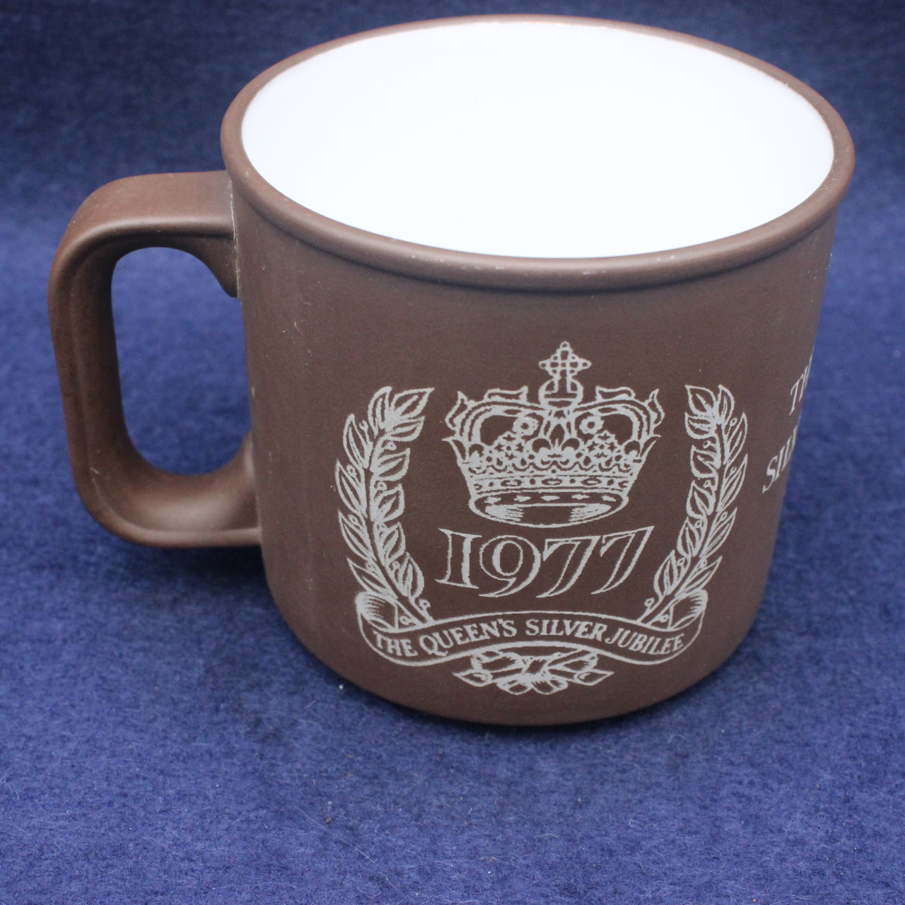 The Silver Jubilee of Queen Elizabeth II marked 25 years on the throne, celebrated throughout the United Kingdom and the Commonwealth in 1977. Street parties, parades, and community events captured the mood of festivity, while commemorative ware — mugs, plates, and beakers — was widely produced by potteries and manufacturers across Britain.