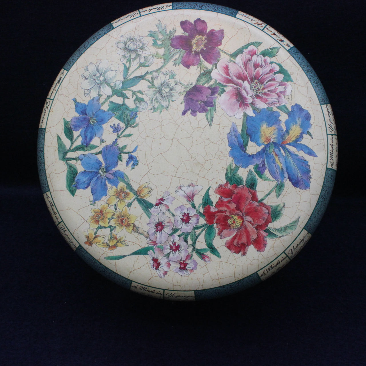 Bring floral elegance to your collection with this Vintage Ringtons Luxury Chocolate Tin. Designed with an antique effect and decorated with country garden flowers including iris, anemone, narcissus, and camellia, it’s a charming piece of promotional packaging from Ringtons.