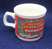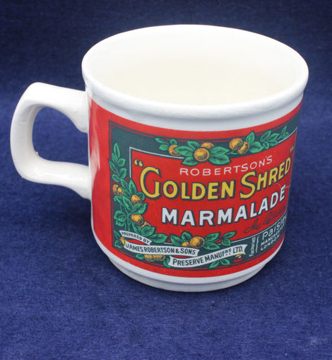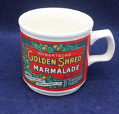 White mug with a red label featuring 'Robertson's Golden Shred Marmalade' Very attractive mid size mug. A must have for the collectors shelf.
