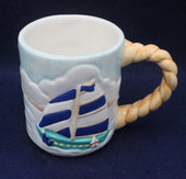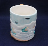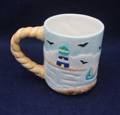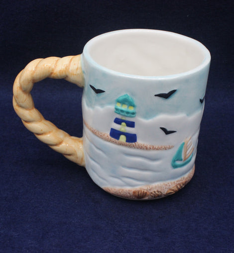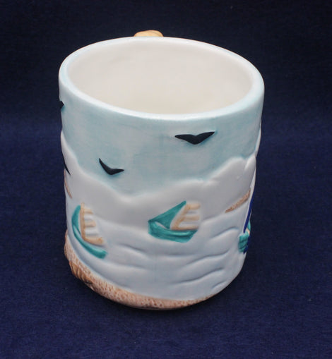 A must for any collection is this vintage sea side gift mug. In excellent condition it features a textured design featuring boats, birds, beach and a lighthouse. Fabulous mug.