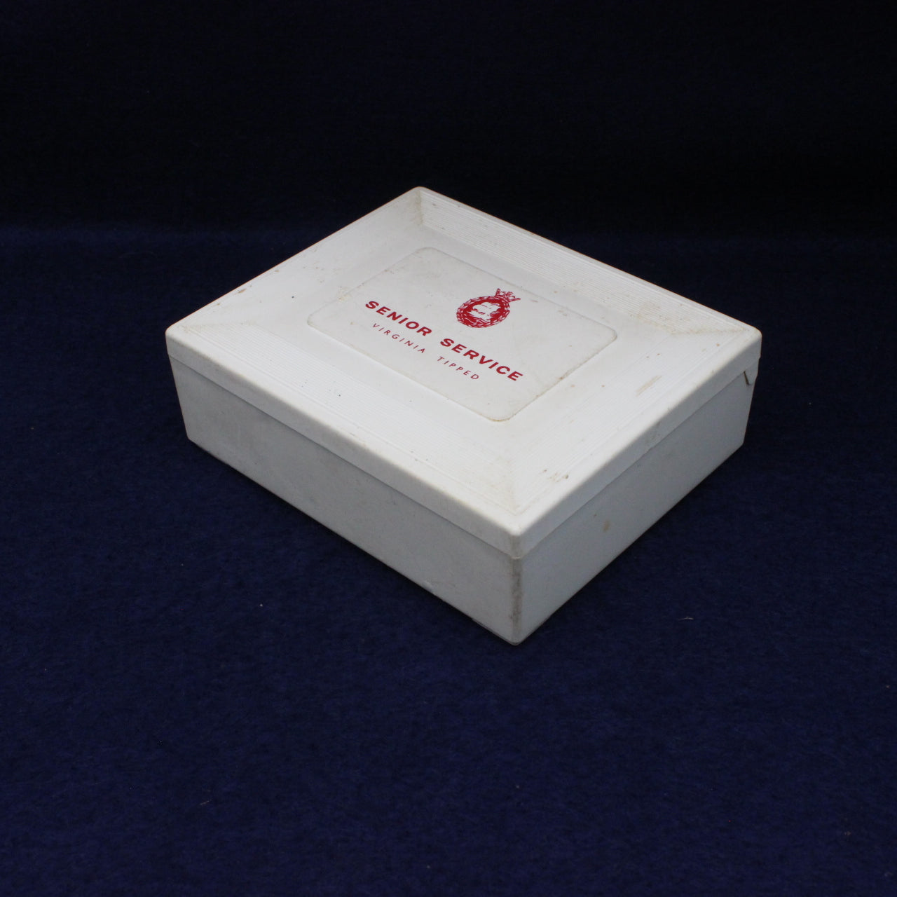 Step into mid‑20th‑century tobacco history with this Vintage Senior Service Empty Cigarette Box. Featuring the distinctive red ship logo and bold lettering, it reflects the branding of Senior Service — marketed as “the aristocrat of cigarettes” and one of Britain’s most recognisable Virginia brands.