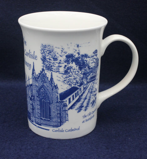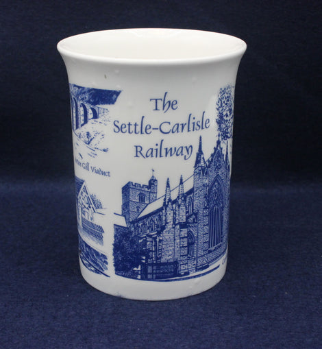 This blue and white collectors mug features pictorials of Settle Station, Arten Gill Viaduct, Carlisle Cathedral and The Old Quarry at Stainforth. Excellent condition.