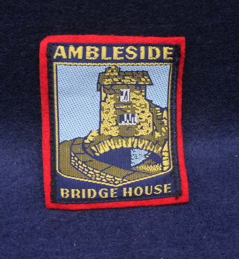 Ambelside Bridge House vintage sew on badge. Bridge motif badge with red outer.