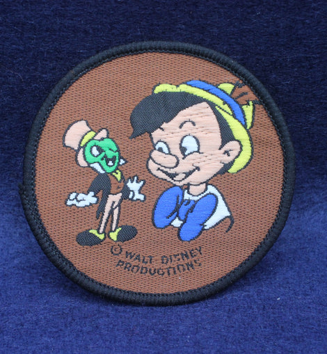 Vintage Circular Sew on Disney Badge Pinocchio and Jiminy cricket. Walt Disney Productions