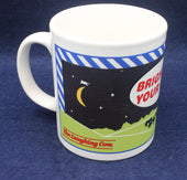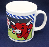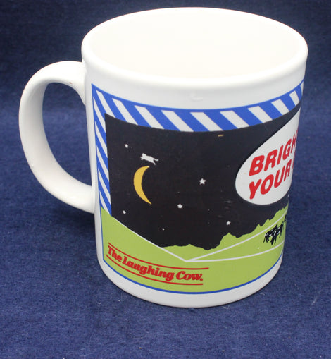 Vintage Staffordshire Pottery Fromageries Bell Mug in excellent condition. Laughing cow mug with slogan Brighten Your Day.