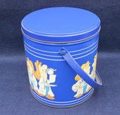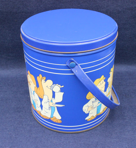The Tetley tea folk in action on this lovely vintage blue biscuit tin. The Tetley biscuit tin as had little use and is in very good condition for it's age. 15cm high x 14cm wide