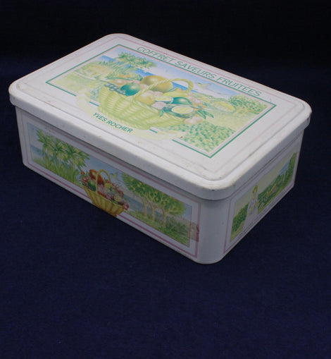 Yves Rocher became a global name in natural beauty by the 1970s–1990s, known for plant‑based skincare and gift sets presented in attractive reusable tins. These tins were often themed around fruits, flowers, or botanical extracts, making them popular as gifts and keepsakes.