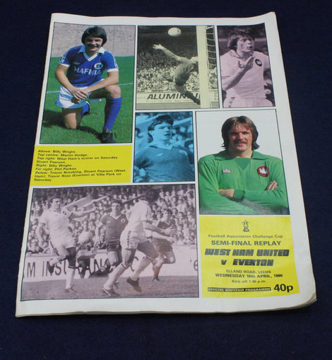 This original West Ham United vs Everton programme from the FA Cup Semi‑Final Replay on 16 April 1980 is a superb piece of English football history. Played at Elland Road, Leeds, this high‑stakes replay decided who would reach the FA Cup Final — a competition West Ham would famously go on to win.