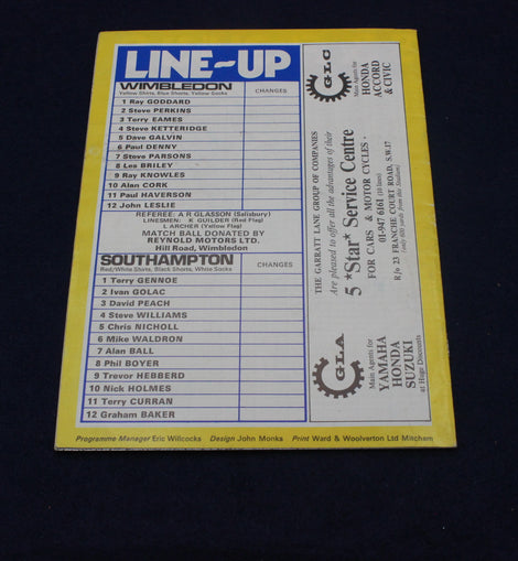Held at Plough Lane, the match saw non‑league Wimbledon take on First Division Southampton in a classic David‑vs‑Goliath encounter.
